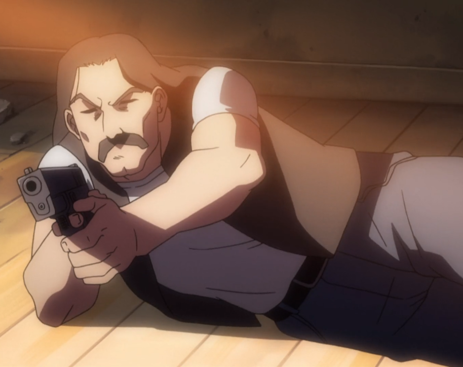 In contrast, in the manga, Mikey followed the surviving mercenaries to track down the soldiers who killed their comrades while Bugsy left to sort things out with Bren. As they walked through the streets, they came across FARC fighters and briefly exchanged gunfire with them until Shenhua and Revy came by and killed all of the men fighting each other.[3]