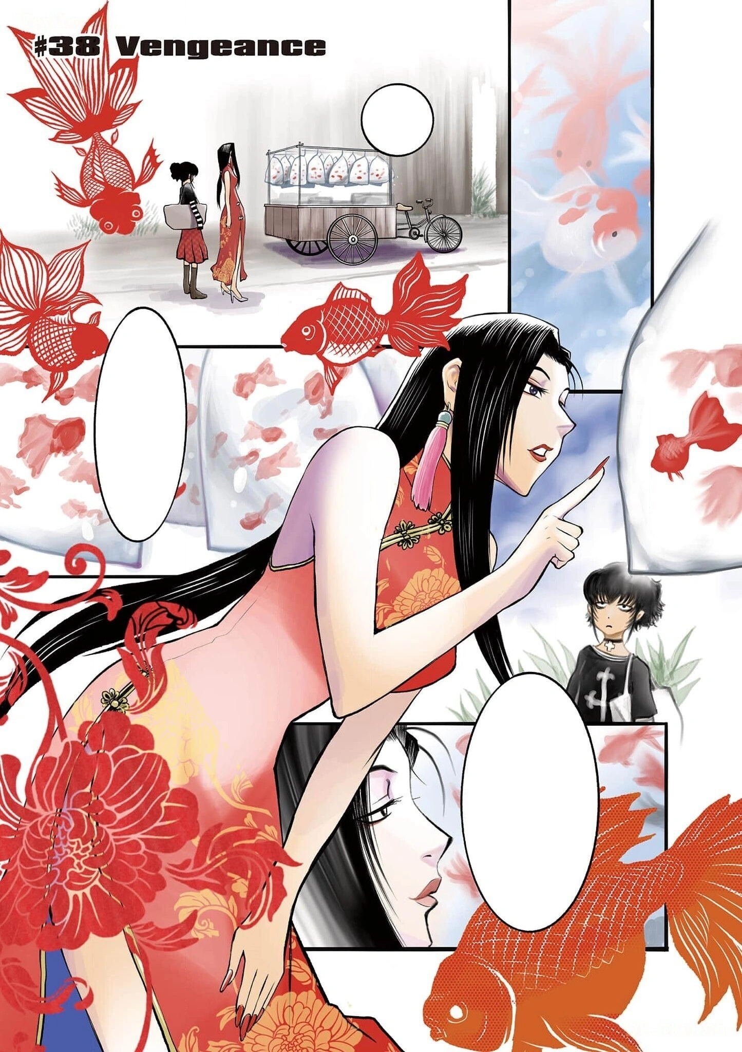 Out in public with Sawyer, Shenhua came across a goldfish stand on wheels and looked at one of the goldfish bags, remarking that it was an unusual sight. As she looked at the goldfish, Shenhua saw a blurry eye through the bags and water, and she went around the stand to see a small, sulking girl standing there, asking her if she was all alone and where her father went. Although Shenhua smiled and asked in concern, the girl remained silent. At the same time, the girl's father, a police detective, began lethally attacking several Hong Kong gangsters nearby who had attempted to kill him and his family via arson. Meanwhile, Shenhua sat down next to the girl on the curb and tried to cheer her up by saying that her father should be back soon, asking the child's name. Only getting silence in response, Shenhua continued asking in English if she could understand her words. Speaking Cantonese, Shenhua asked her the same question again, also asking her where her father was. Still gloomy, the girl merely answered that he was out.