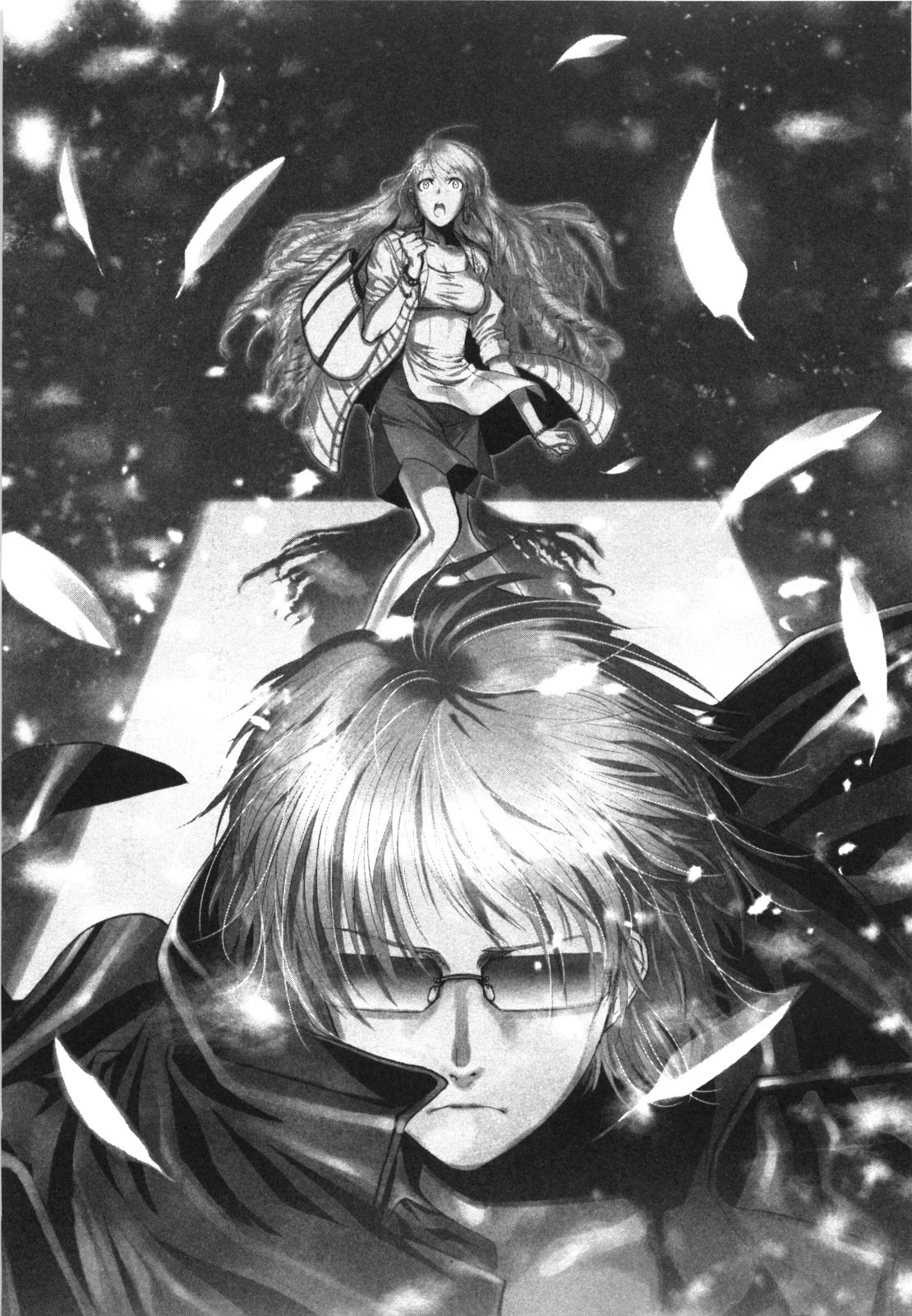 Seeing Tricia tremble, Lotton gave her a gentle hug and asked Revy if she could open the way for them. In response, Revy asked him if he could keep up with her, but Lotton misinterpreted her tone as a defense against sympathizing with the bond between him and Tricia. Revy reminded them that the Triad was already on their way, but Lotton declared that he would pave the way, and Tricia clung to him. Exiting the second floor, Lotton bid goodbye to Revy as if it was the last time they would see each other, with Revy snidely remarking that she hoped so. Moaning after being hit by the rain, Tricia pointed to outside the harbor, where several vehicles were heading their way. Realizing that Revy was not bluffing, Lotton talked to himself poetically about the escapades of men and women. Turning to Tricia, he told her that they can escape to the sky, looking toward the moon. Tricia agreed to follow him wherever he went, and the two ran toward the derrick crane on the quay.